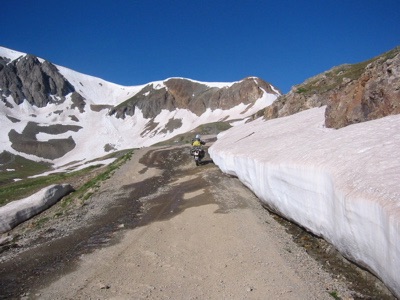 As we approached the summit of Cinammon Pass, the trees thinned and the road became windier. The snow became more prevelent.