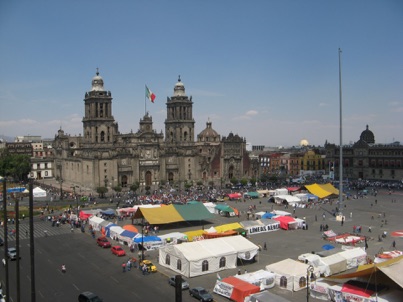 The restaurant is situated so that one side faces the Zocalo and we coincidentally arrived at the same time the huge Electrical Workers Union began its march through downtown. We walked onto the balcony and got a bird’s eye view of the crowd.
